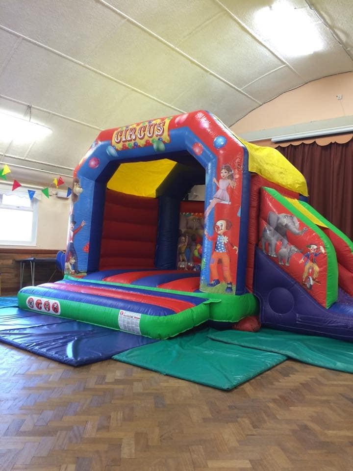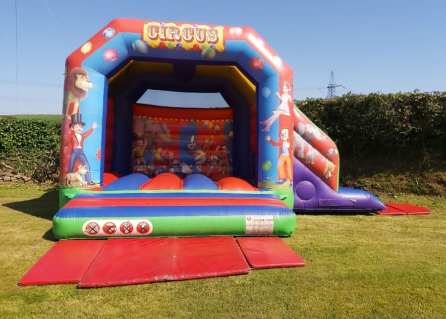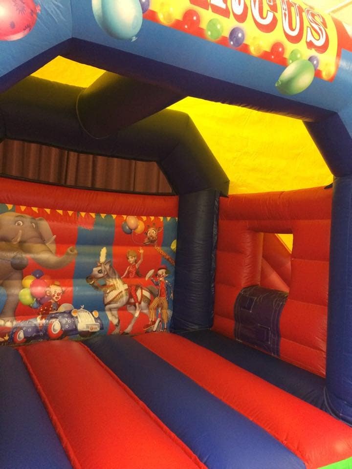 Our very popular bouncy castle with side slide circus theme. Suitable for indoor and outdoor hire, this bouncy castle will keep the children happy for hours with the added bonus of a slide.