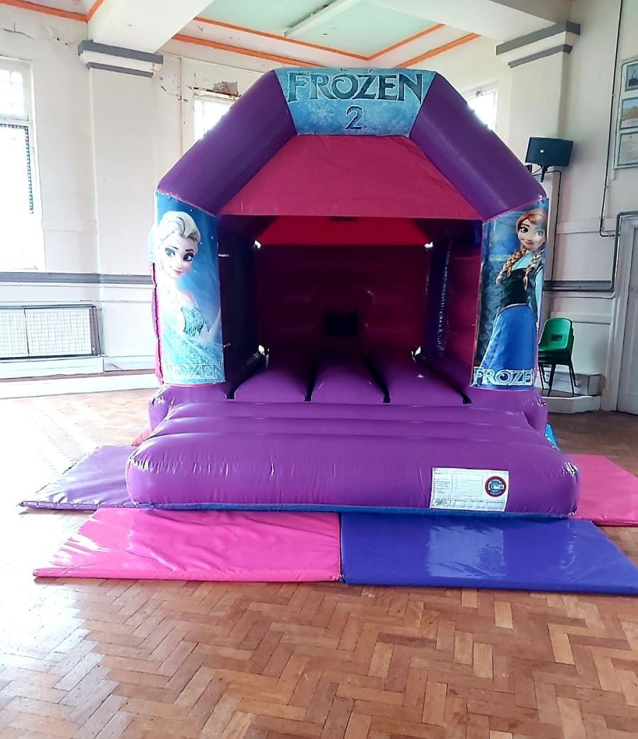 We now have a 11ft x 15ft Frozen themed bouncy castle available as a standard castle (£80) or can be upgraded to a disco castle with lights and music inside for £95.