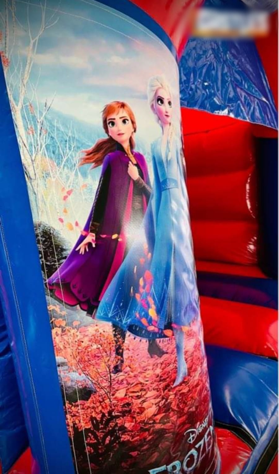 Here is our brand new polished Frozen combi castle with slide. Perfect for those wanting a slide attached to their castle. This is sure to be a big hit with the kids!