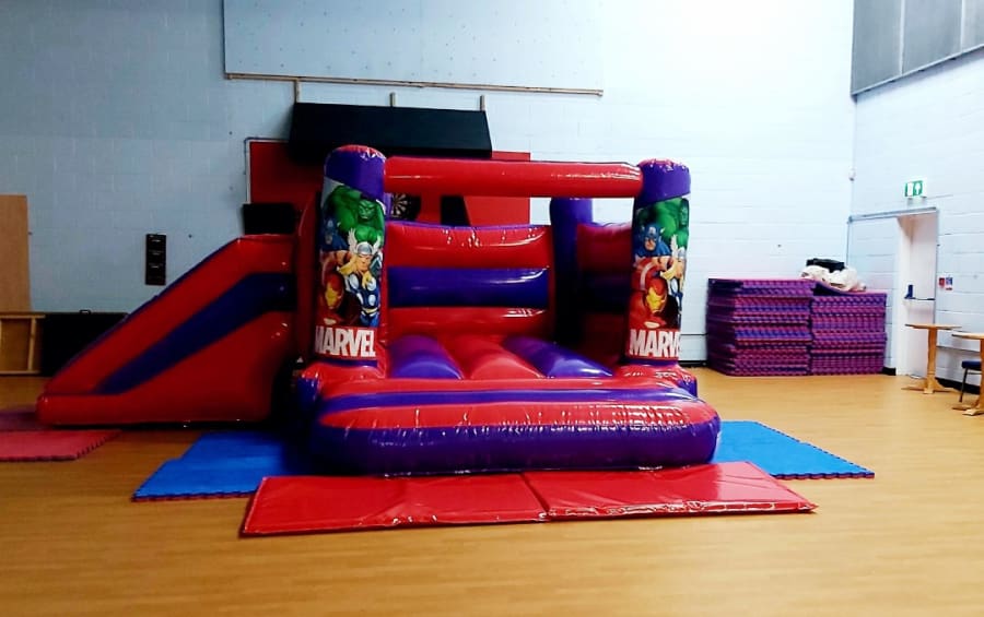Our new low height Super Hero combi castle with slide, perfect for those indoor venues with low ceiling height.