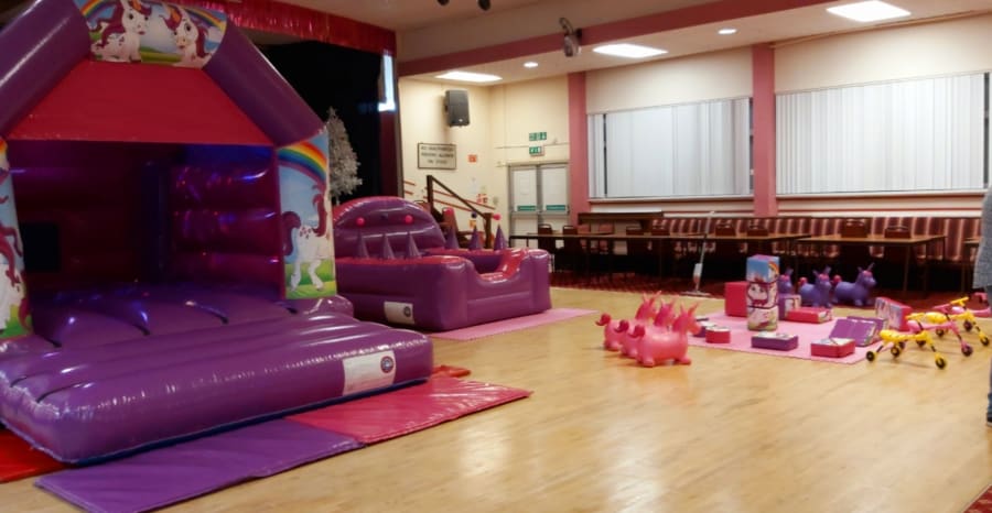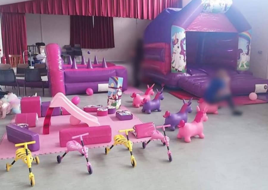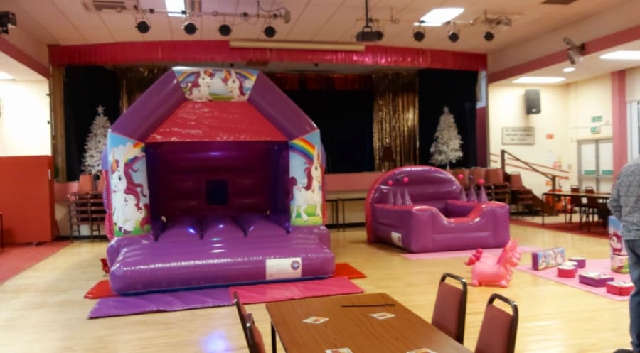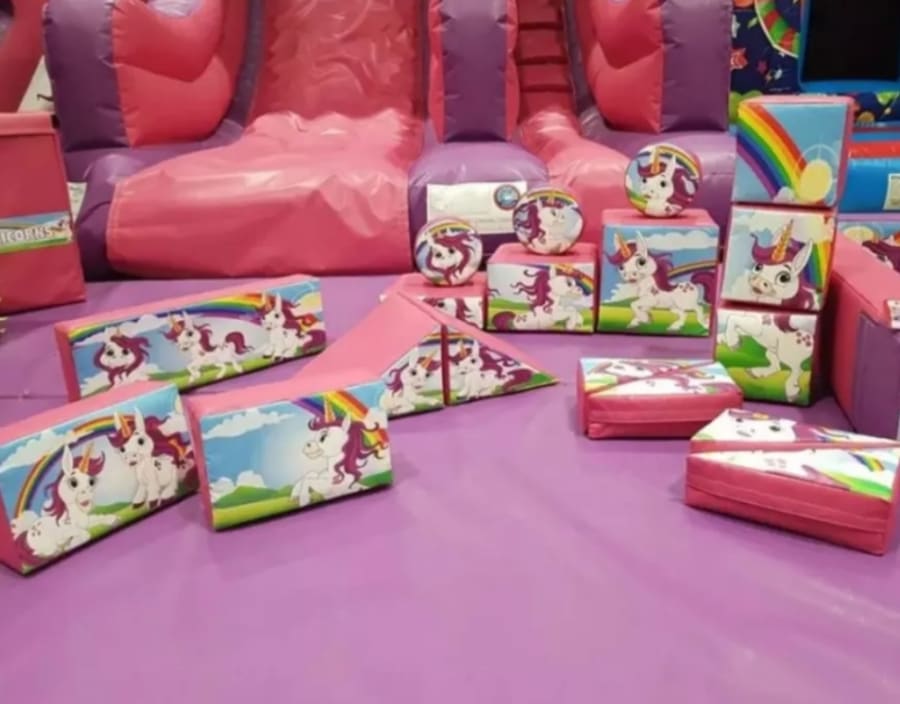 This package complete with our unicorn disco castle, juggler ball pit (the balls actually float from the jugglers) matching unicorn softplay (consists of softplay shapes, slide and see saw) didi cars, skuttle bugs and hoppers, glitter tattoos, bubble OR foam machine and a unicorn mascot stay and play.